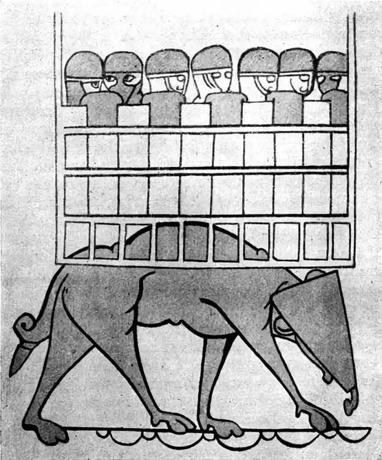 emmm……这是背着人的战象,哥本哈根大学图书馆藏品,作于13世纪。图片:Folio / bestiary.ca