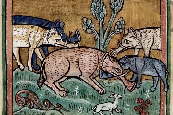 这真不是野猪,而是中世纪动物寓言插图里的大象,大英博物馆藏品,作于13世纪。图片:bestiary.ca