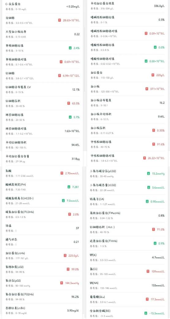 血常规和血气分析检查结果,似乎不太好丨作者供图