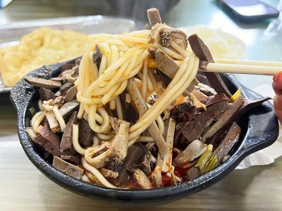 ■ 羊杂(割)羊头、羊蹄、羊肝、羊肺、羊肠、羊血熬制到位的汤头,再加上辣椒、葱末的搭配,羊杂是多少大同人早上醒来就心心念念的一口。光羊杂还不够,还有土豆粉的加入,粉条在筷头上肆意飞舞,嘴皮子尽情嗦展,这扎实地一碗下去,心满意足。