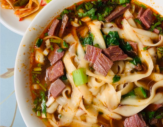牛肉丸子面配料简单,名字即所有,味道却十分特殊。从理论角度分析,秘诀应该是在汤。用牛骨熬煮,再加上草药和香料配成的秘方,熬出来的老汤风味独特,让牛肉+丸子+面的组合成了“想到就馋,吃了还想”的经典面食。