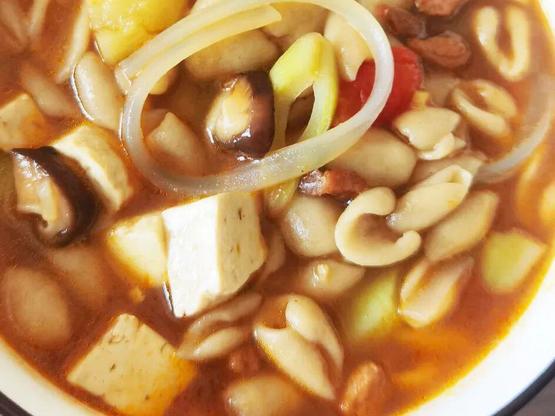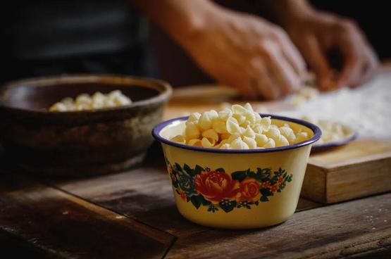 猫耳朵做起来费时费力,但口感绝对值得。卷曲的形状加上有韧劲的实质,嚼起来QQ弹弹,中间的凹陷还能蘸上汤,一口下去便有“爆浆”般的快乐。