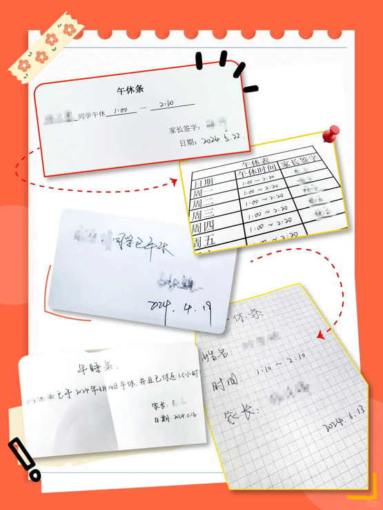 山西甚至还有一种叫“午休条”的东西,学生在家也必须午睡,还要家长签字。如果没有午休会被老师批评……