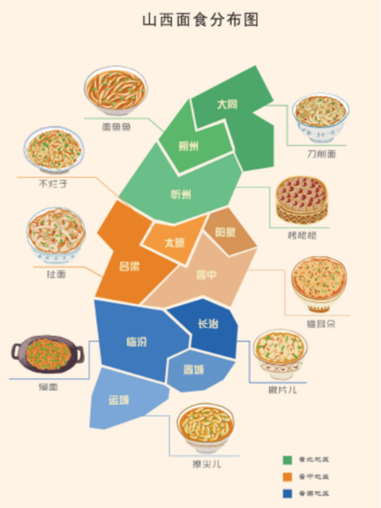 山西面食分布图丨图片来自《山西面食视觉形象设计研究》