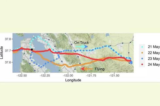 但第三天的记录推翻了谢弗的猜测。第三天,这只海鸥又重复了同样的旅程:再次前往旧金山回收处理站搭便车,这次走的是圣马特奥-海沃德大桥,终点仍然是同一个堆肥垃圾场;而它的伴侣则在家中看守巢穴。