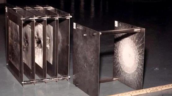为了应对高速微粒撞击,航天器使用一种叫 Whipple Shield(惠普尔屏蔽) 的结构设计。它与现代坦克装甲的思路高度一致:不是靠“一块很厚的硬钢板”来抵御撞击,而是靠“复合装甲”来让能量逐级衰减。
