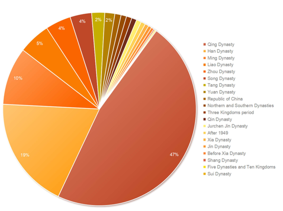 各历史时期古墓数量占比分布