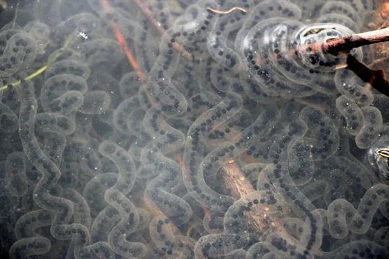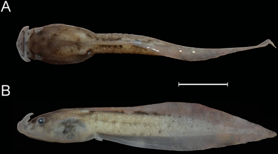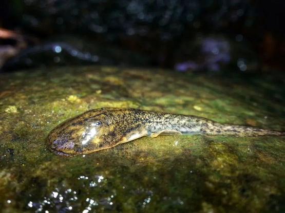 直到2016年,科学家从水底的泥沙,才挖出了小跳蛙的蝌蚪。它们身体细长,缺乏色素,眼睛退化为黑点,藏在皮肤下面,长着一身隆起的肌肉。当人们把这些蝌蚪放回到水里,它们立即像鳗鱼一样扭动身体,快速钻入沙床中。