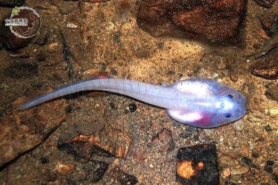 红点齿蟾:透明的巨型蝌蚪最近还有新闻说在重庆的洞穴里发现皮肤几乎透明的巨型蝌蚪,长度接近10厘米,是不折不扣蝌蚪中的巨人。由于长期在黑暗的洞穴中生活,蝌蚪的眼睛几乎完全退化,只留下两个芝麻大的小黑点。