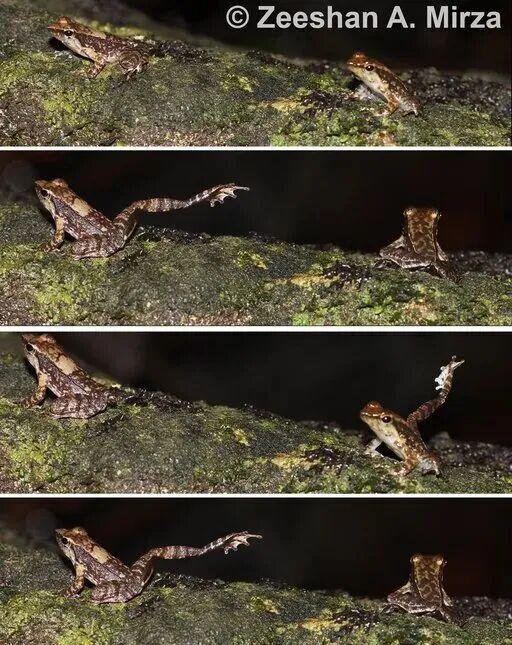 小跳蛙生活在湍急溪流边,雄蛙通过蹬腿的动作,向其他雄性宣告领土,所以名字又叫dancing frog。丨Zeeshan A. Mizra