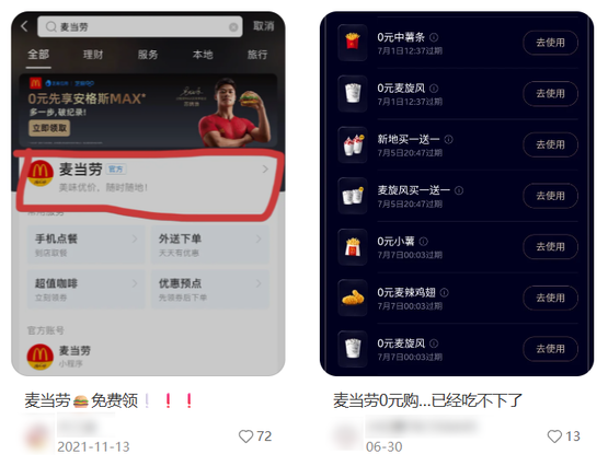 还有人会随时蹲守平台的优惠动向。一有活动上新,社交平台上就有大量的分享帖子,势必抢到每一份免费麦麦薯条。