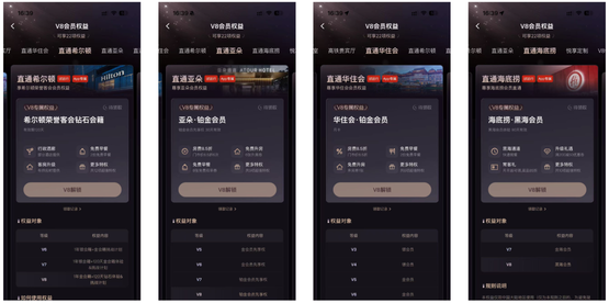 滴滴更是找来了华住会、海底捞、亚朵和希尔顿,几家联动。只要你是滴滴的 V8,那同时也是海底捞黑海,希尔顿钻石,亚朵、华住会的铂金会员。
