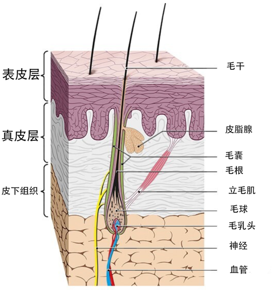 虽然身上各处毛发的形态都各不相同,但实际上毛囊的结构都是相似的。