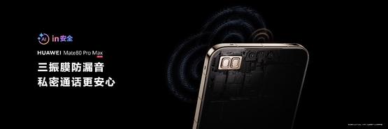 从通话上,华为Mate 80 Pro Max首发三振膜单元、搭载多声道扬声器,更升级声场控制2.0新算法,全场景通话防漏音能力直接提升30%,却能更加降噪,让通话更清晰。让你全场景安心私密通话,通话声音不再有外泄风险。