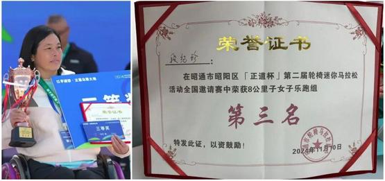 段姐在老家昭通的轮椅马拉松比赛中获得三等奖 | 图片来源:受访者提供