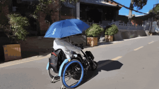 康复机构爱无疆的廖鹏看到段姐时,她正独自推着轮椅,带着个大背包,飞快地过马路。昆明的阳光照在她脸上,一种风尘仆仆的生命力。