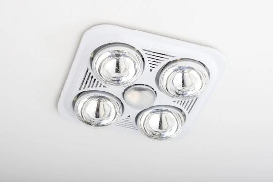 灯暖型浴霸的原理和白炽灯差不多,发热靠大灯泡,通电后温度能达到200摄氏度左右,可以迅速为小面积浴室升温。