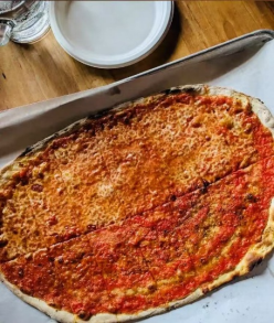 当然,你也可以按常规套路加意大利香肠、蘑菇啥的。但本地人吃Apizza遵从最传统的吃法,配料就是就扔点碎番茄、划拉几丝大蒜,然后再加土豆泥。