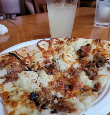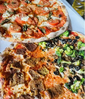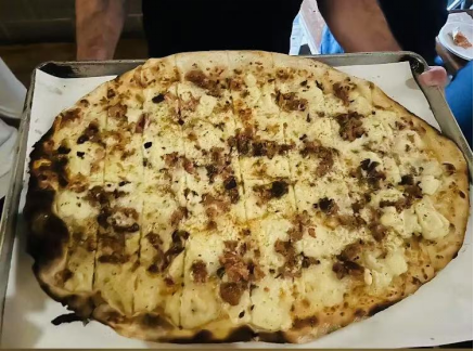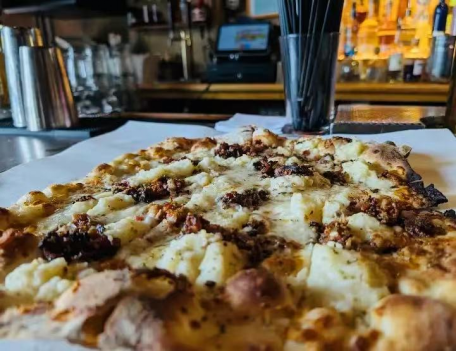 Apizza是纽黑文特有的披萨,以其薄脆的饼底、简约的配料和煤火烘烤的独特风味而闻名。它的创始者是一百年前从意大利那不勒斯漂洋过海来的移民们,名称来源于意大利那不勒斯方言中的 “'na pizza” ,意为 “a pizza” 。