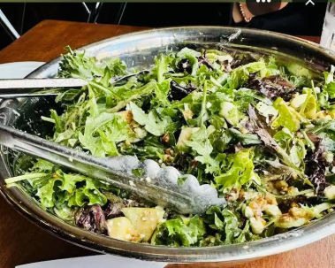 多种时令新鲜蔬菜,配上橄榄油、果醋、小核桃仁、葡萄干等调味佐料。虽然不算完全健康,但比起纯吃double碳水,聊胜于无。