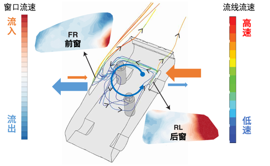 换气最好的组合是对角两窗。前部窗口压力较低,后部窗口压力较高,空气主流会从后窗进入绕行至压力更低的对侧前窗流出,于是自然形成了“穿堂风”。