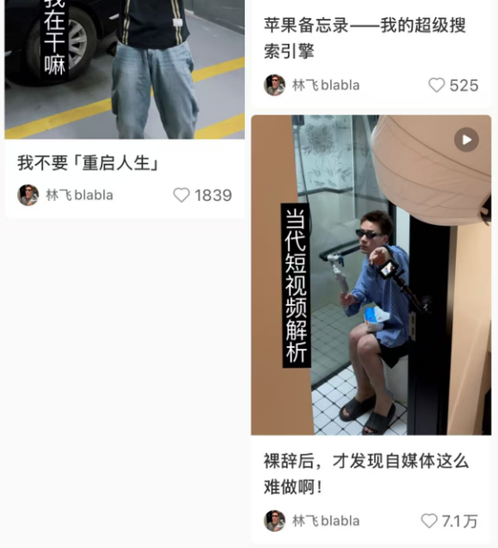 @林飞blabla 的感受是,上班的时候自己就是执行层,跟着老板规划走就行,做了账号以后所有的问题和选择都需要自己去负责,账号更新的内容、商业化,都需要自己花时间去探索,并且承担后果。