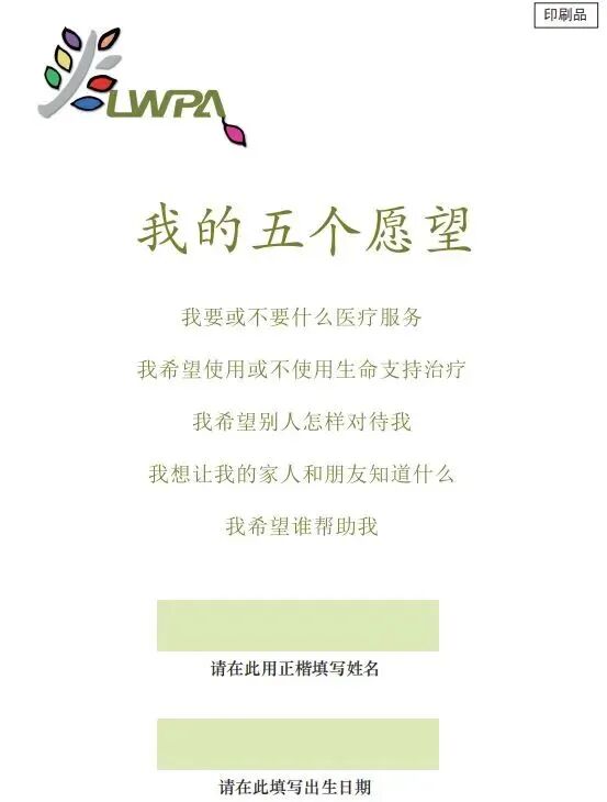 有的人在了解生前预嘱后会犹豫,她完全理解。签不签署《我的五个愿望》不是关键。“你要知道有这回事,”王博说,“你总有需要的时候。最关键的是在你需要的时候,你知道还有这么一条路。”