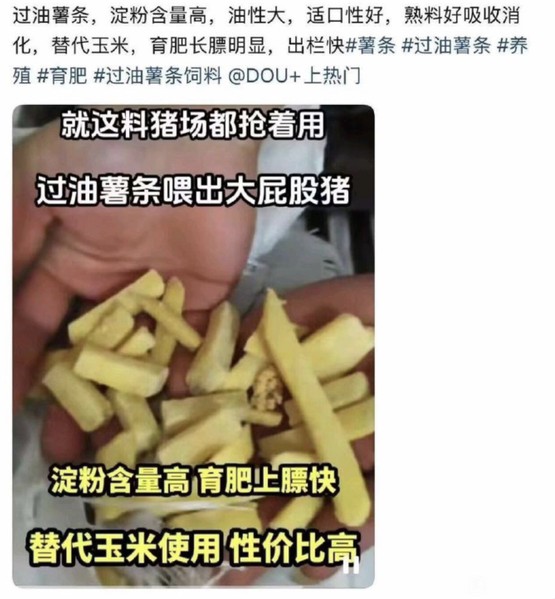 薯条当猪饲料,成吨的薯条被被直接送到养猪场,一群小猪蜂拥而上,也是许多人的晚饭梦想画面。