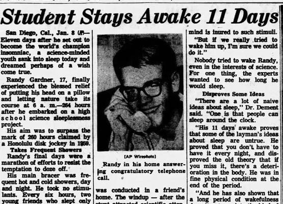 1963年12月28日,17岁的兰迪·加德纳(Randy Gardner)决定抛弃睡眠。