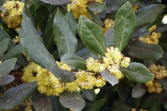 为了适应地中海气候干燥炎热的夏季,月桂具有典型的蜡质抗脱水叶片。图片来源:Wiki Commons