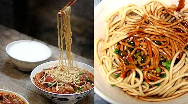 湖北的襄阳牛肉面(左)与武汉热干面(右)都是碱面的代表作品。图片来源:bytravel.cn