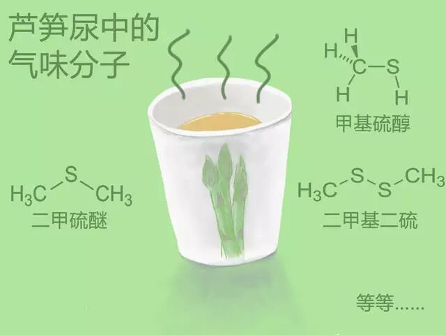 从发现芦笋尿的怪味以来,不少研究者都对其中的化学成分进行了分析。目前一般认为,芦笋尿的气味来自其中的一系列含硫化合物。