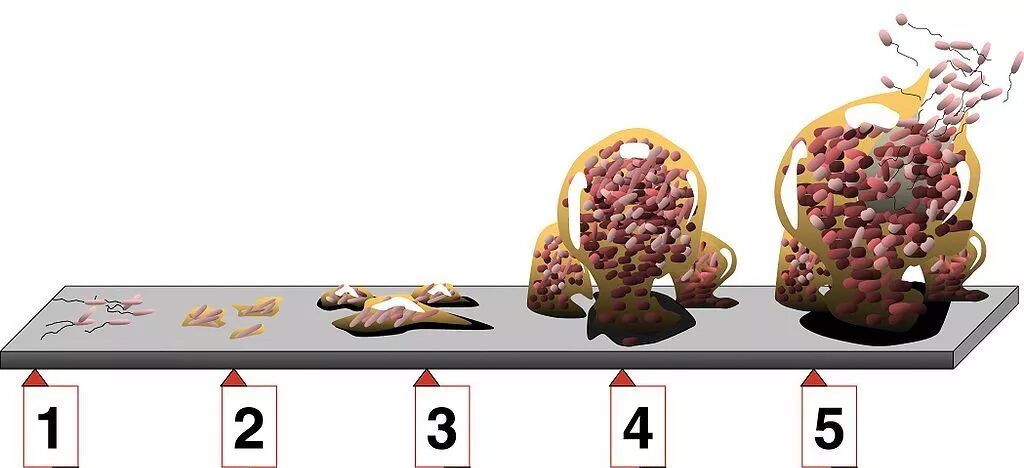细菌形成的生物膜结构。图片:D. Monroe / wikipedia