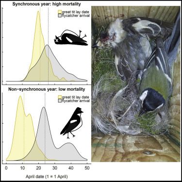 繁殖季重叠(上),斑姬鹟死亡率高。图片:Jelmer M.Samplonius,et al. / Current Biology(2019)