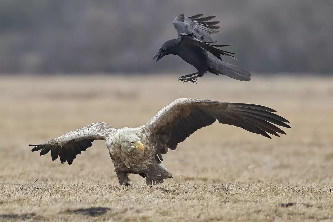 渡鸦和白尾海雕(Haliaeetus albicilla)的战争。图片:Jens Steyer / Flickr