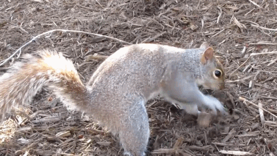 有意思的是,灰松鼠的嗅觉也不错,不时还能找出不是自己埋的坚果,如果配合视觉线索就是神偷了。因此灰松鼠在埋坚果的时候总是很谨慎,如果观察到周围有同类,往往选择不埋,甚至会用“障眼法”——做出掩埋的动作,但实际上并不把含在嘴里的食物埋入。