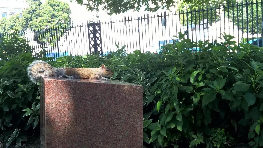 在美国各大城市,我见到的都是这种来自东部的灰松鼠。仲夏下午,它趴在公园花岗石雕塑上,全身铺平,似乎是在给自己散热。图片:紫鹬