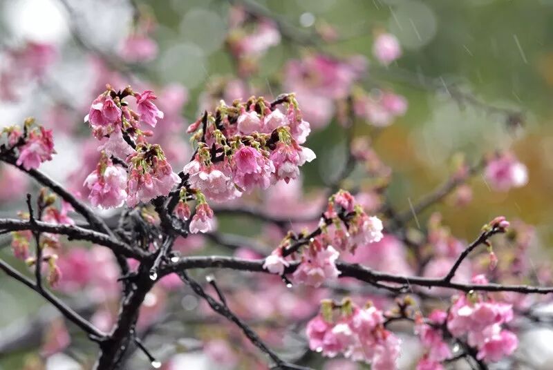 细雨中的钟花樱桃。图片:三蝶纪
