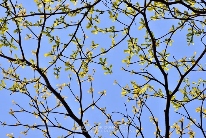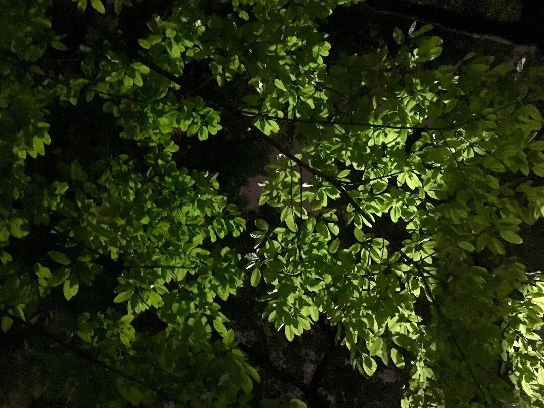 绿黄葛树落叶快,长叶更快,不多时,新的鲜嫩的大片的绿就从枝头窜出来,很快又长满一树。在晚上发黄的灯光下,绿黄葛树的叶子在夜空映衬下绿得耀眼,每次看到我都忍不住要拍几张记录,发到朋友圈。研究生同学评论说,像免疫荧光照片。实在很形象。
