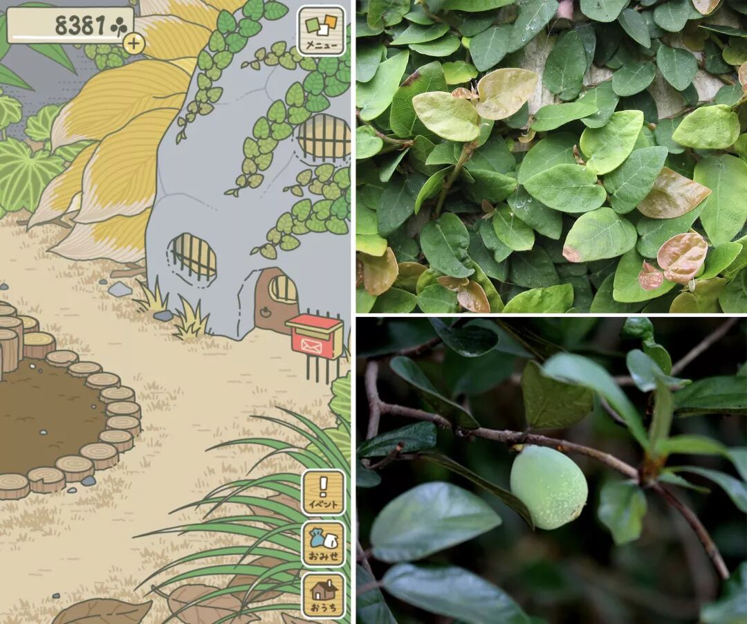 游戏《旅行青蛙》中,蛙儿子房子外壁攀爬着的就是薜荔。薜荔是榕属植物,能结出和无花果类似的隐花果。图片:旅かえる;Ixitixel & Vincent Cheng / wikimedia