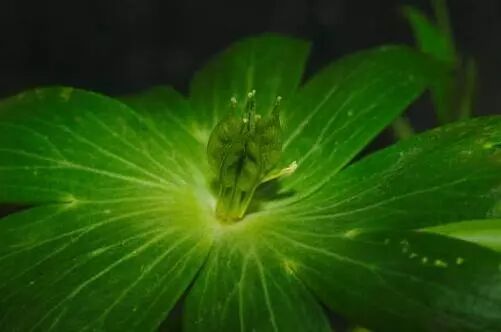 完全绽放的冬菟葵,凑近看看,注意它深黄色的退化花瓣、嫩绿色的心皮和众多的雄蕊。图片:Pacific Bulb Society;标注:江南蝶衣 & hannah