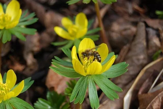 这种精致可爱的明黄色小花叫做冬菟葵(Eranthis hyemalis),是毛茛科菟葵属多年生的草本块茎植物。它原产于欧洲南部意大利、保加利亚、巴尔干半岛等地,生长在排水良好的林下。