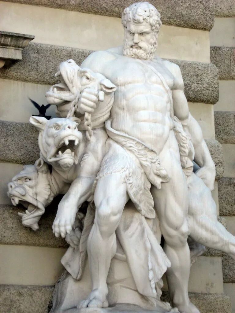 维也纳霍夫堡皇宫雕塑:赫拉克勒斯与刻耳柏洛。图片:Greek Mythology Wiki