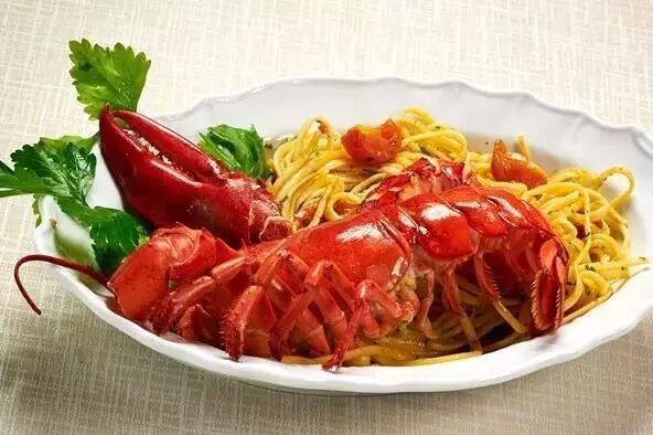 龙虾肉和清淡的淀粉类食物的搭配是永恒的经典,例如龙虾烩饭、龙虾意面等等。我们在超市也常能买到冷冻的加拿大龙虾,这些龙虾被捕捞上来后立刻送到加工厂,快速用盐水煮熟后放入淡水中清洗再放入盐水中浸泡,之后套上网袋,称重并按规格分级后送入急冻室,急冻后的熟龙虾,放在冰水中瞬间浸泡,挂上冰衣,再进行封装。