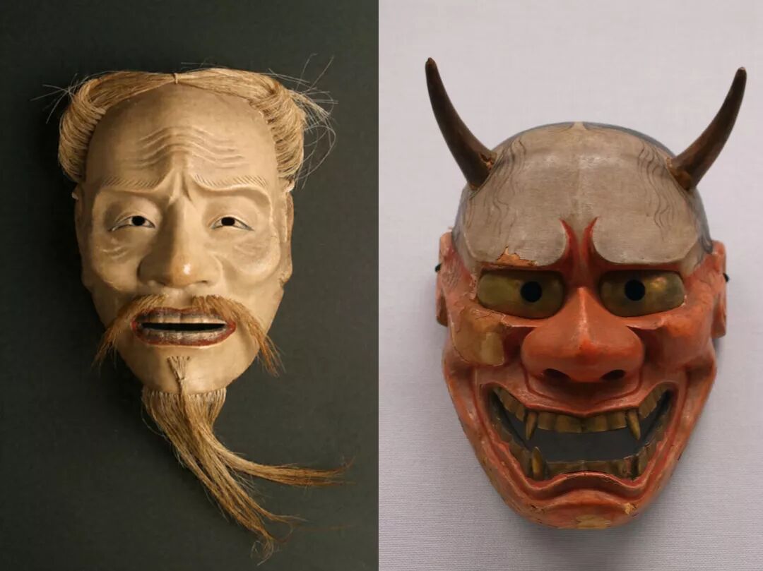 能乐中的“尉”面具(左),不过大家或许对右边的“铁环”形象更熟悉,没错就是柯南中常出现的那种。图片:bunka.nii.ac.jp;Kakidai / wikimedia