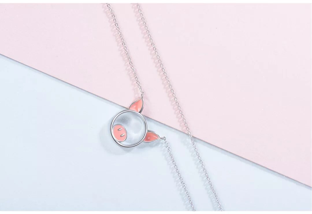 粉粉猪项链