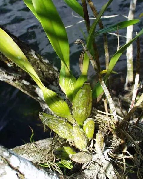 兰科围柱兰属的Encyclia chimborazoensis,可以清晰看到嫩叶基部生长着渐尖的假鳞茎。图片:wikimedia