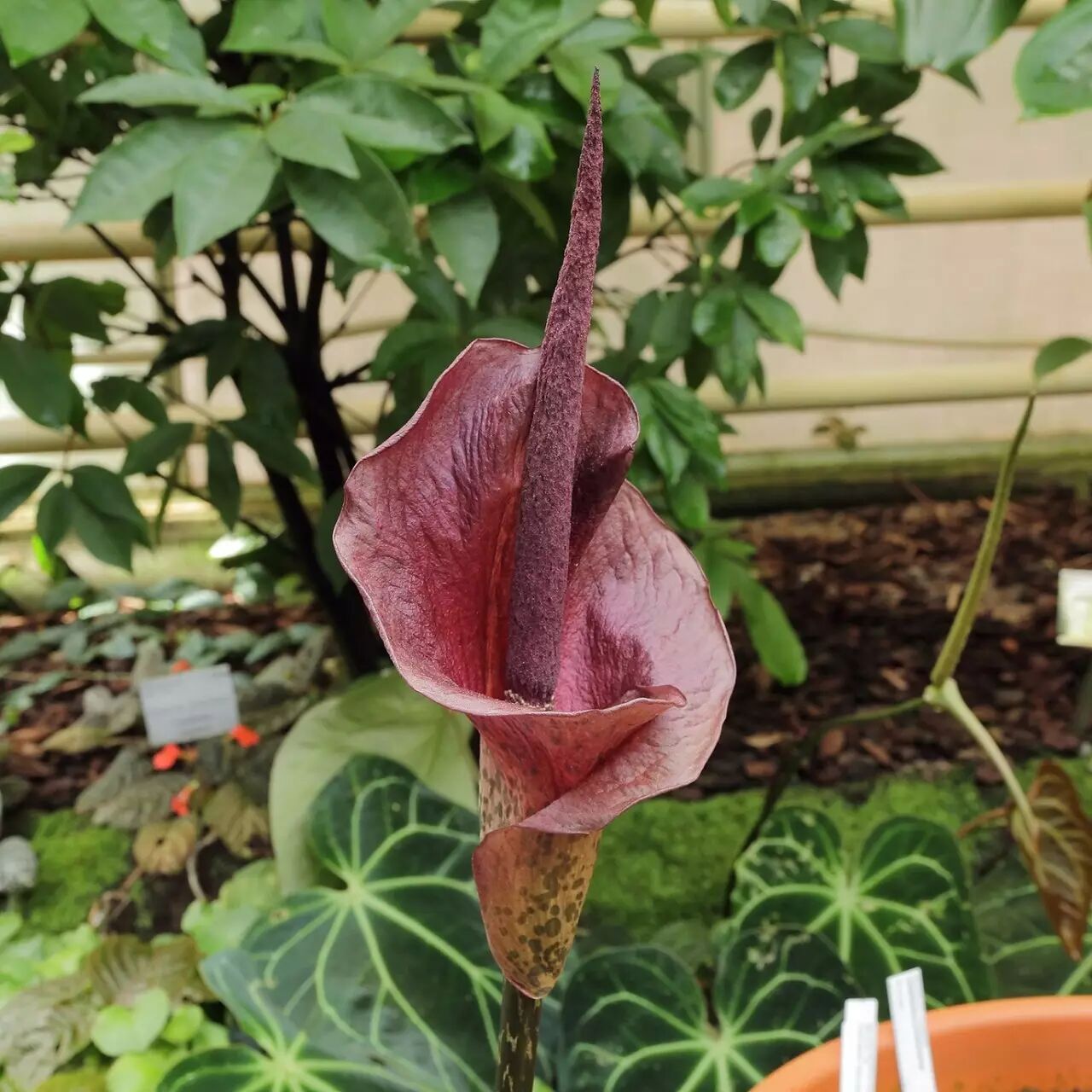 魔芋属有一个很污的属名:Amorphophallus,由amorphos"畸形的"和phallus"阴茎"组成。魔芋的肉穗花序的形状除了让人联想到不正常的丁丁,还有点像蛇,尤其是配上叶柄和茎上的深色斑点,看上去非常的邪恶。在英语里它被称为voodoo lily、snake palm以及devil's tongue,这些印象跟“魔芋”也是一致的。