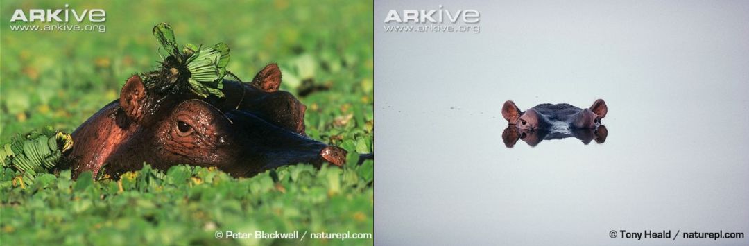 它身上的各处,都表现出对水生的高度适应。它的鼻、眼、耳都位于头颅的上部,即使整个脑袋浸没在水里,仍然能保证这些器官在水面之上。耳孔可以闭合,细长的鼻孔也可以闭合,四个足趾之间有蹼相连。河马的皮虽厚,表皮却很薄,容易失水,离开水时间太长,就面临着皮肤脱水和身体过热的危险。