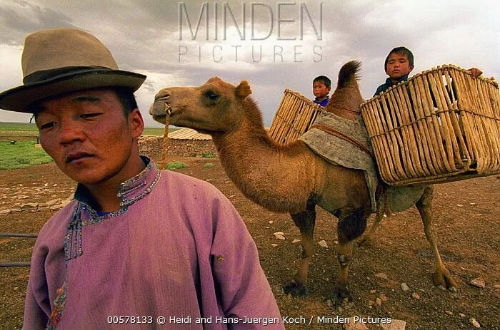 双峰骆驼驮着蒙古少年。图片:Heidi and Hans-Juergen Koch / mindenpictures